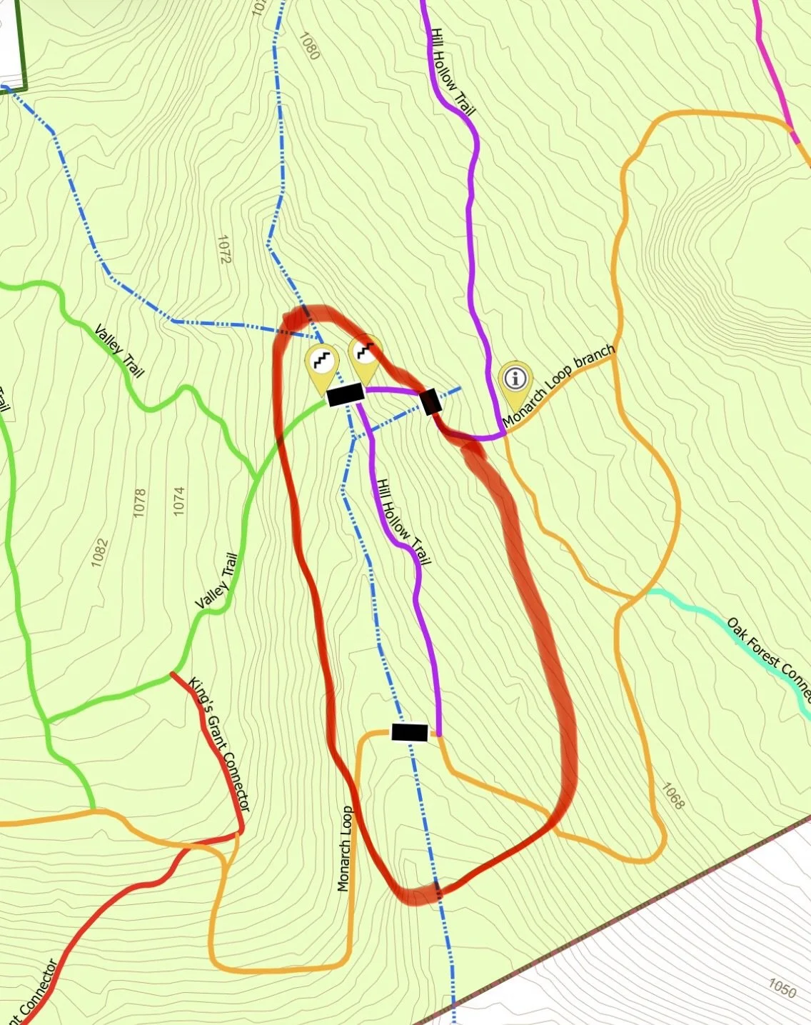 Volunteers gradually cleared and planted parts of this area in the past decade. When building Hill Hollow Trail in 2016, the area was so thick with vegetation, you couldn’t even take a step. We we look forward to seeing the area transformed with help from the community!